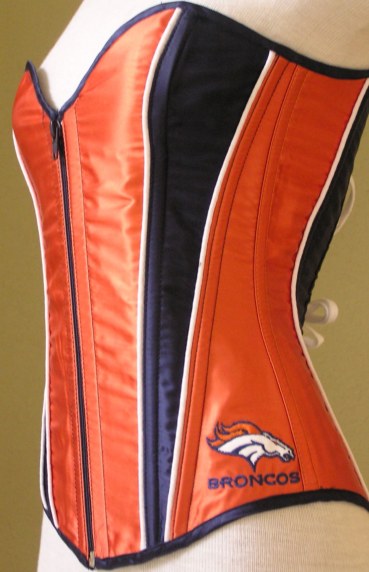 65. Fit into your dress with this Denver Broncos orange satin corset.