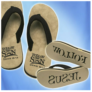 43. Spread the sacred Word of God on the beach with these Follow the Son flip flops.
