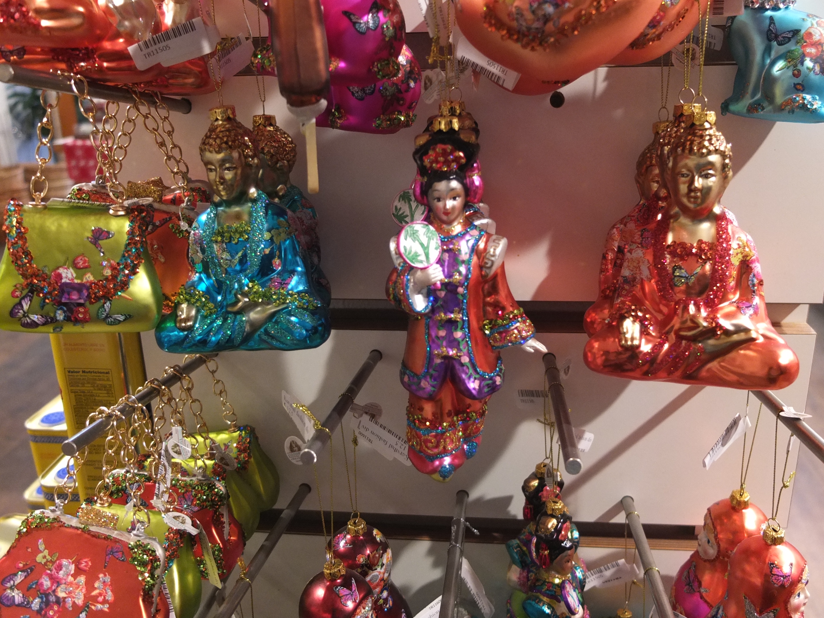 Yes, these are Buddhist ornaments. And yes, Christmas is a Christian holiday. But then again, Christmas is a popular holiday so anything goes. But I see the irony here.