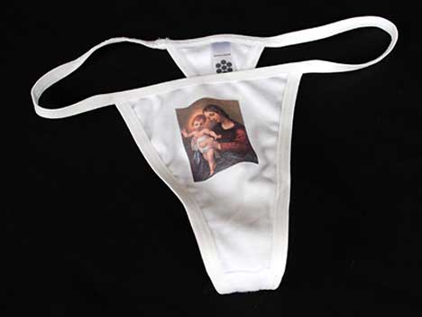On second thought, don’t. Seriously, I don’t know if I should be insulted with seeing the Madonna and Child on a pair of skimpy underwear. But I’m shocked that somebody would ever think it was a good idea.