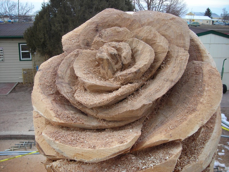 Now that’s a huge rose. Probably derived from a chainsaw carving. Kind of looks obvious. Wonder how they’ll shake off the shavings.