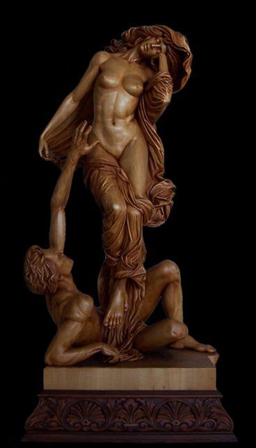 We use wood for all kinds of things. We use it to build stuff. We use it to make furniture. We use it to burn for fuel. However, there are some people who use wood for creating works of art whether through carving, chainsaw, or whatever. Of course, I’m talking about wood sculpture. Sure you might see some neat carvings at festivals. Still, while wood may be flammable, biodegradable, and vulnerable to insect damage, it’s fairly easy material to sculpt. Unlike metal, you don’t need to make a mold or use any fire unless you want to. Unlike glass, it’s not delicate and easily breakable (well, for the most part). Unlike clay and ceramics, you don’t need to put it in a kiln. And unlike stone, you don’t need to continuously hammer it with a chisel unless you want to. Just take any assortment of cutting tools from your local hardware store and cut away. Not to mention, wood is a rather light material and take in fine detail. Nevertheless, wood sculpting has been extremely widely practiced and forms an important but hidden element of many cultures. The Native Americans tribes in the Pacific Northwest are a major example since they build totem poles (though we know little of how that tradition developed since wood tends to decay. And outdoor sculpture doesn’t last long). But you’d find some form of wood sculpting tradition all over the world which is still practiced today. I mean you still have wood sculpting at festivals in the summer and fall as well as contests. Hell, you can even buy some wood sculptures for indoor use online. Of course, some types of wood are easier to carve in than others. So without further adieu, I now present to you an assortment of wood sculptures for your reading pleasure.