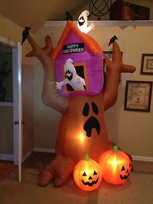 I think it might just be easier and cheaper to make the front of your house look haunted. Inflatables can be quite a headache. Still, it does kind of look like a haunted Victorian mansion.