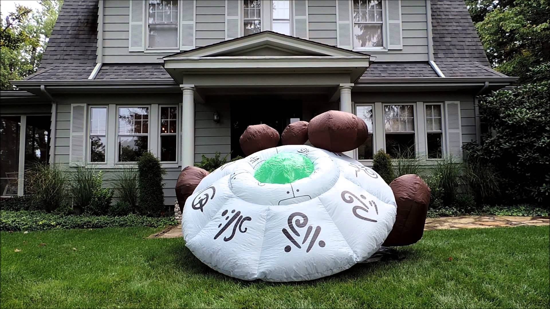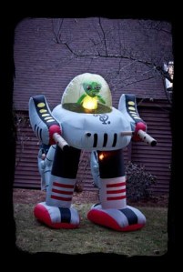 Now inflatable decorations are a recent phenomenon and more or less associated with Christmas. However, Halloween isn’t far behind since it’s a very popular holiday. And there are plenty of people who go way out for the holiday as well. So it’s not hard for the manufacturers to realize that there’s a market for them. Besides, many places tend to have trick or treaters so it helps that people’s homes be as Halloweeny or scary as possible. After all, when it comes to decorations, Halloween and Christmas are the two biggest occasions. Valentines and Easter you can take or leave. Still, while some decorations could be quite scary, I’m not sure what to think about inflatables on people’s yards. I mean it really doesn’t cost much to make your outdoor lawn scary to begin with. You can make a lot of scary stuff with simple materials from a craft store or old junk from home, reuse Christmas lights, carve pumpkins, and buy some other decorations at just about anywhere. I released earlier depicting exactly certain examples like someone using dresses or chicken wire for ghosts. I mean you can really get creative. But if you want a skeleton in your yard, I’d recommend that you don’t dig one up from the cemetery or a science classroom. Just buy a plastic one online or at a store. It’s just legally safer that way. Nevertheless, on the other hand, inflatable decorations are expensive, take more time to set up and take down, and are cartoonish. And let’s just say anything cartoonish is usually not scary. Still, I can show some of the better Halloween decorations. But you’d be bored to tears so I’ll show you some of the stuff that’s either tacky or doesn’t make sense. So for your reading pleasure here is an assortment of some crazy Halloween inflatables that you might see on someone’s yard.