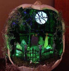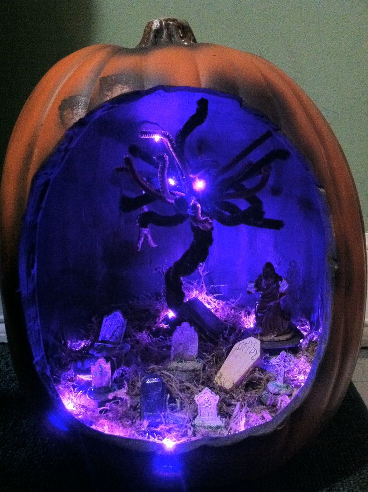 Now unlike many of the pumpkin dioramas here, this one is carved in a rather unusual way to give it a spooky feel. Still, not sure how that can be pulled off.