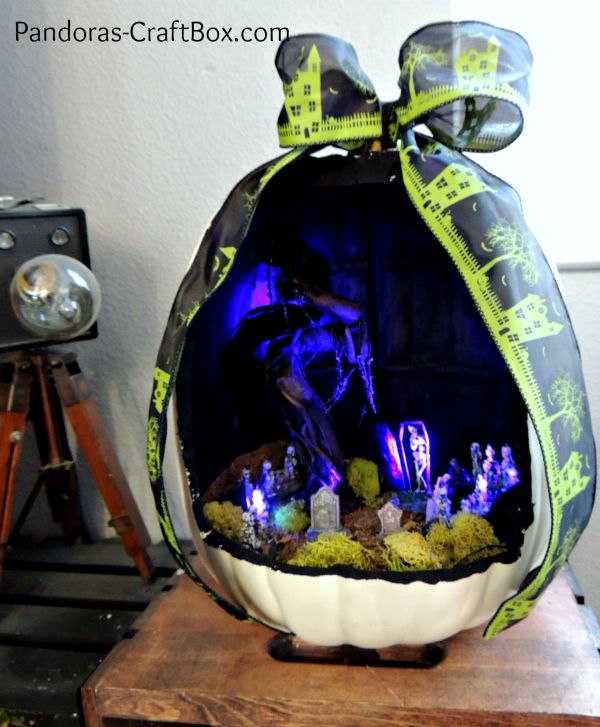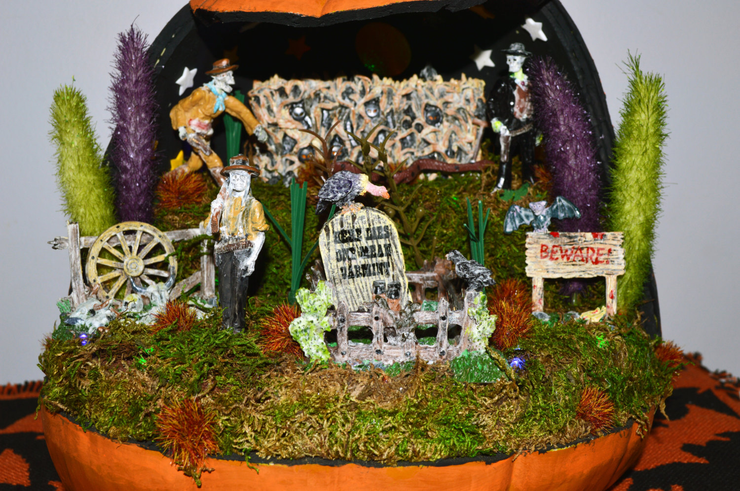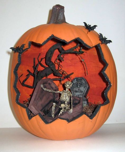 Finally, a pumpkin diorama with an appropriate mummy scene. However, I’m not sure if Egypt has that many palm trees near the Valley of Kings.