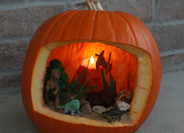 45. A pumpkin like this shows a world during the time of the dinosaurs.