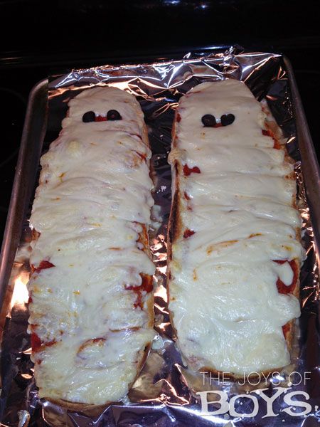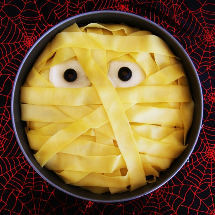 7. Nothing makes a more fitting Halloween dish than long bread mummy pizza.