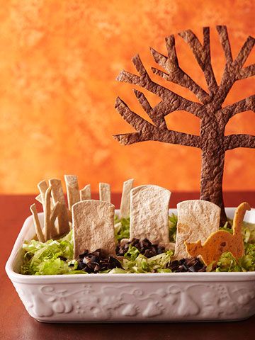 21. For appetizers, you can’t do better than serving graveyard nachos and dip.