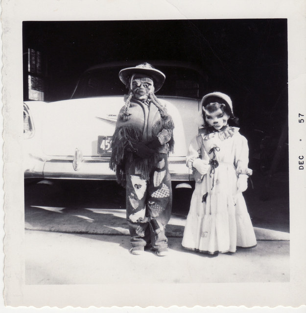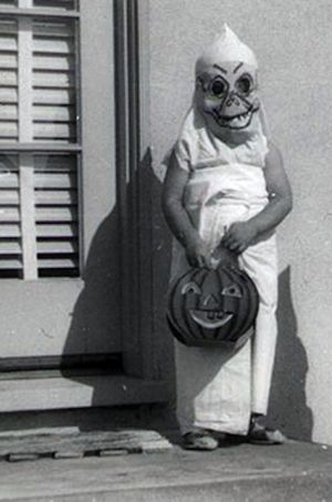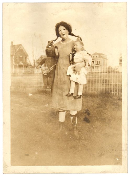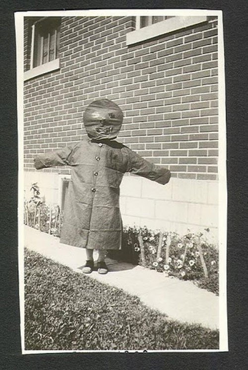 During my first Halloween on WordPress in 2013, I did a couple posts on inappropriate Halloween costumes (one for everyone and another one for children). This October I did a post on DIY Halloween costumes and runway fashions that are more appropriate for Halloween in my opinion. This time I’m going with vintage Halloween costumes or what kind of outfits your grandparents wore while they were trick or treating. Now Halloween isn’t a new holiday by any means. I mean it’s one that’s blended with customs pertaining to Celtic pagan and medieval Christian rituals. And people have been dressing up in costumes for parties and trick or treating for ages. Still, when you look at some of these old vintage photos, you get the impression of how bizarre and creepy many of these costumes were. I don’t know if it’s the black and white photography or how costumes were made back then. But the effect is pretty scary and terrifying. Other costumes are just plain weird and some aren’t nearly as wholesome as you’d expect at the time. So without further adieu, here are an assortment of vintage Halloween costumes that might scare the bejesus out of you that you might find a contemporary slasher horror movie less terrifying.