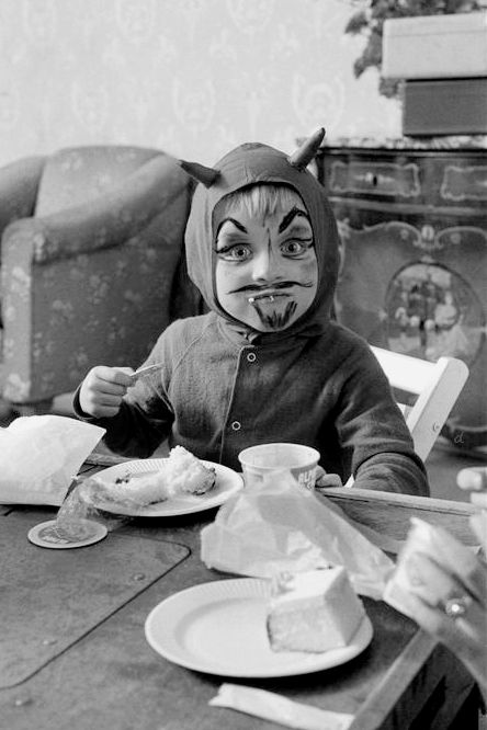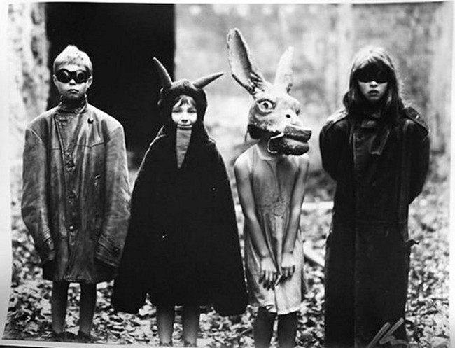 Strange that the least scary kid in this is the one with devil horns. The girl in the donkey head is particularly terrifying to say the least. The ones in masks aren’t much better.