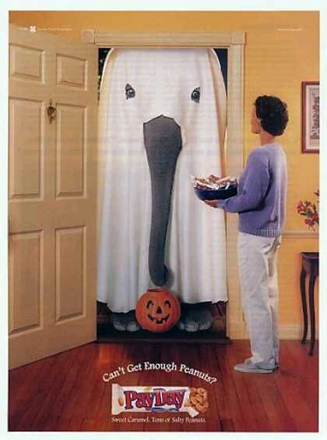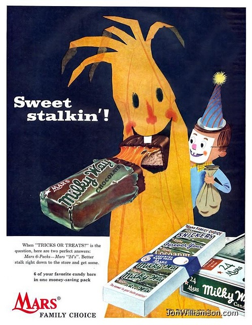 Now this just fucked up. In fact, I didn’t know the Headless Horseman had a head and wasn’t just terrorizing Icabod Crane. Seriously, do you really need an ad like this for M&Ms? If Mars wanted to advertise M&Ms for Halloween, they could just use Yellow and Red.