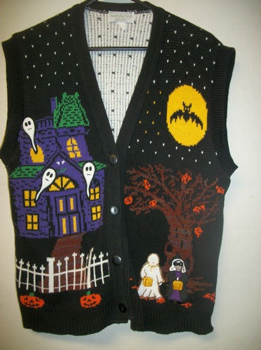Now this looks like something a teacher would wear. But yeah, the “Happy Halloween” bit kind of makes this sweater a bit more tacky than it would be without the words.
