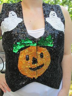 Okay, I’m not sure what to think about sequins in craft projects and decorations. However, this looks like the kind of Halloween vest you’d wear to a disco.
