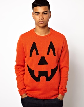 44. When it comes to Halloween sweaters, you can’t ignore the classics such as an orange one with a jack o’lantern.