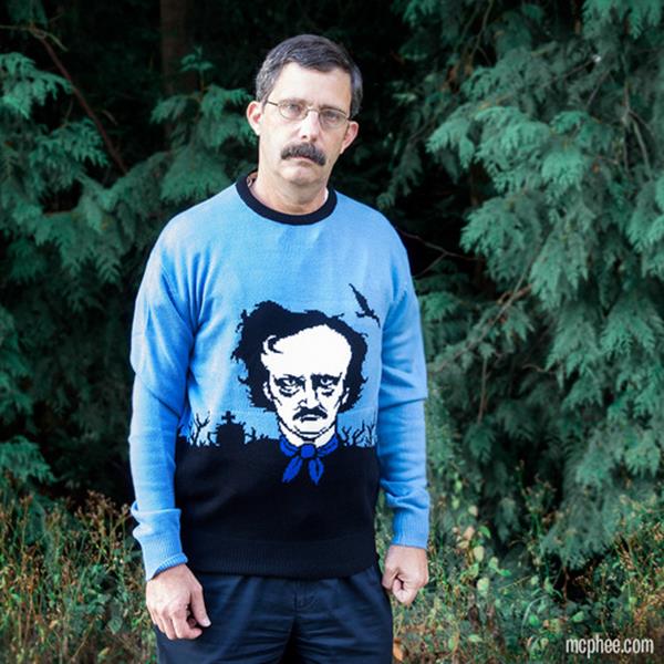 Now this is a clever sweater idea. Poe is indeed quite menacing in this. Still, wonder if he’ll freak out trick or treaters with this one.