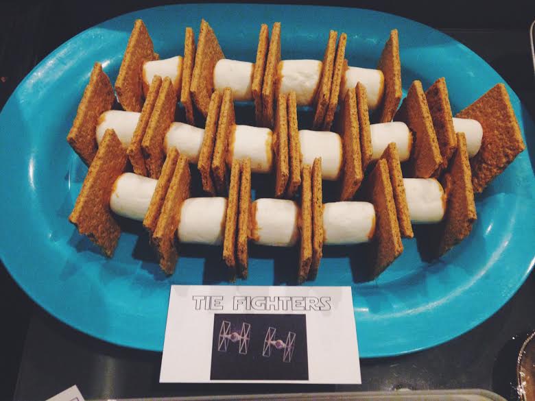 6. To make TIE fighters, all you need are graham crackers, marshmallows, and peanut butter.