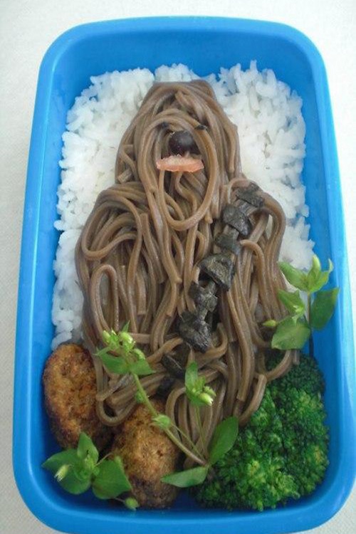 Didn’t know they could make noodles to look like Chewie over rice. Still, it’s quite creative if you think about it.