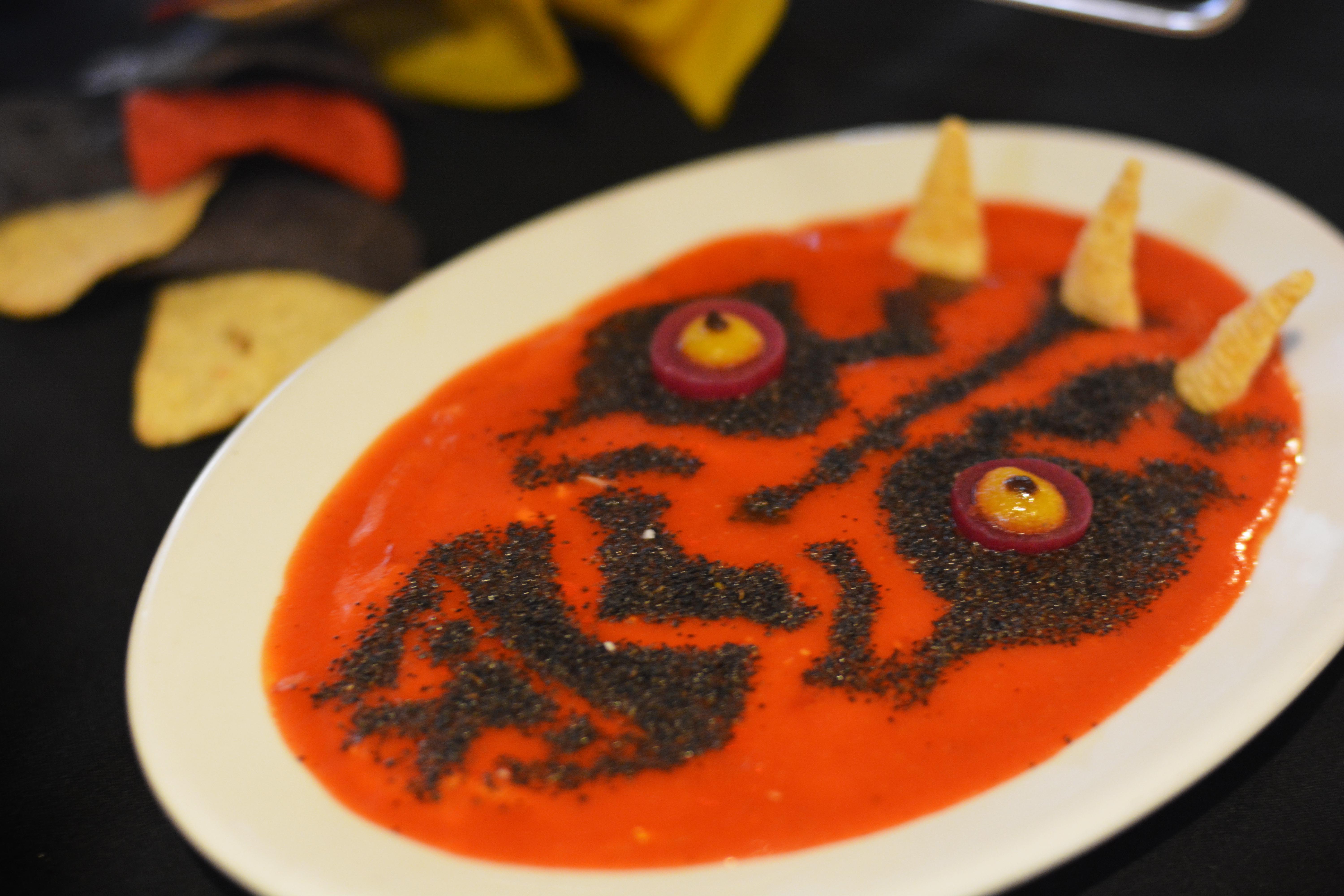 Actually that kind of looks like Darth Maul’s face in tomato soup. But since this is clearly being used as a dip, I’ll let it slide.