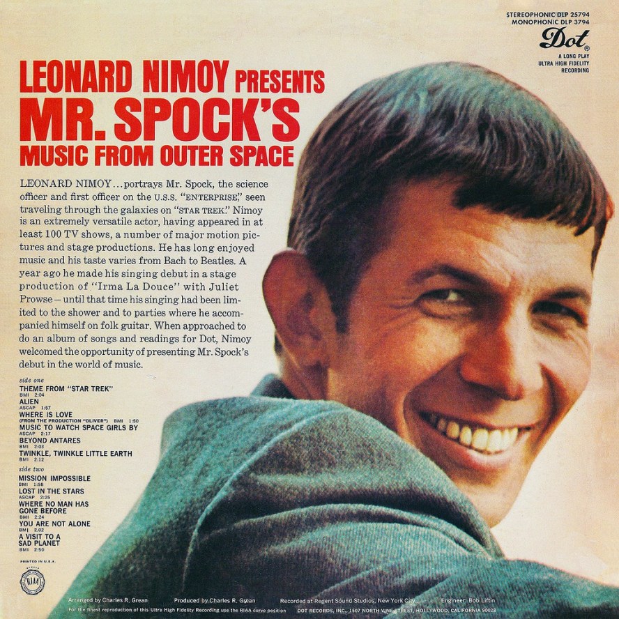 173 Published May 15, 2016 at 1024 × 1024 in Starfleet Approved Star Trek Merchandise from the Final Frontier ← Previous Next → On second thought, to listen to his album you have to be out of your Vulcan mind. Even more so if you think Nimoy’s music video on the Hobbit was anything to be taken seriously.