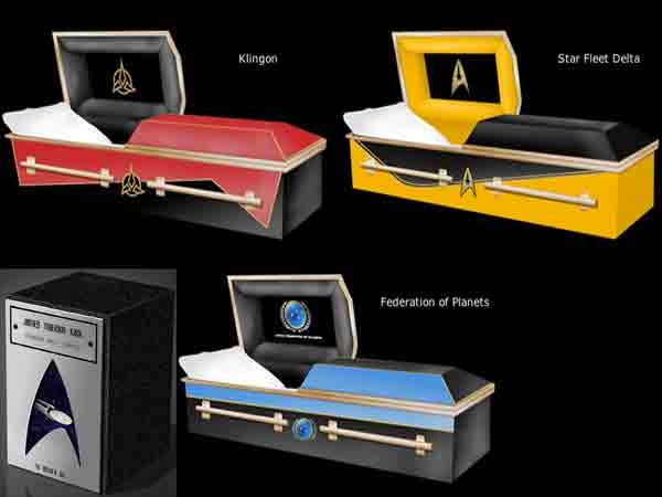 best-future-planning-star-trek-caskets-and-urns Published May 15, 2016 at 600 × 450 in Starfleet Approved Star Trek Merchandise from the Final Frontier ← Previous Next → Caskets come in 3 variations such as Klingon, Delta Quadrant, and United Federation of Planets. Still, I’m sure it’s going to cost much more than a normal casket would.
