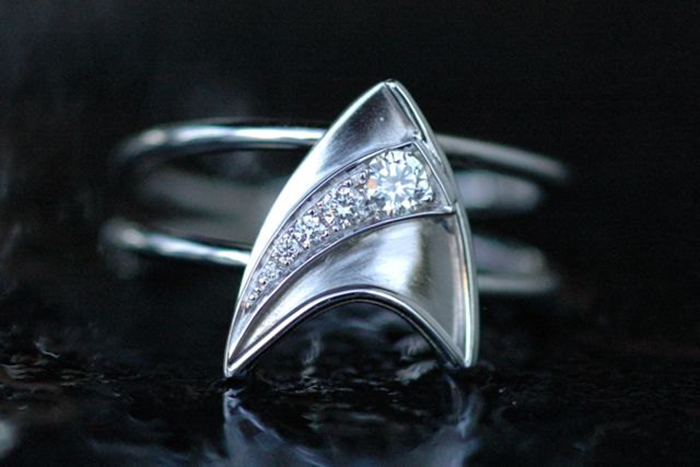 il_fullxfull.370912961_3enk Published May 15, 2016 at 700 × 467 in Starfleet Approved Star Trek Merchandise from the Final Frontier ← Previous Next → Guys, just because your girlfriend likes Star Trek doesn’t mean she wants to get engaged with a Star Trek ring. Better go with a standard one from a jewelry store.