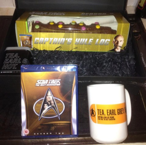 STTNG-Yule-Log-and-Mug Published May 15, 2016 at 478 × 475 in Starfleet Approved Star Trek Merchandise from the Final Frontier ← Previous Next → I think it comes in a gift set. Still, looks like a chocolate roll covered in Easter M&Ms.