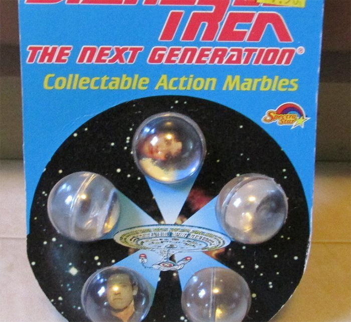 TNG-marbles Published May 15, 2016 at 700 × 642 in Starfleet Approved Star Trek Merchandise from the Final Frontier ← Previous Next → From The Robot’s Pajamas: “Kids that love Star Trek are very likely to throw down their video game controllers and PC mouse and charge the stores en masse for plastic marbles! Marbles. Kids can’t get enough of them!”