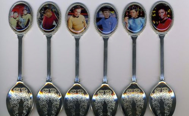trek-spoons Published May 15, 2016 at 650 × 400 in Starfleet Approved Star Trek Merchandise from the Final Frontier ← Previous Next → Each character has his or her own spoon except Chekov and Sulu. For they have to share. I don’t have any logical explanation for this either.