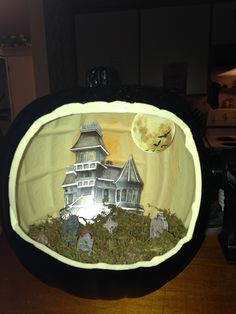 9e8ee5e755bc0aac538f45cef043aad9 Published October 26, 2016 at 236 × 314 in The Spooky World of Halloween Pumpkin Dioramas (Second Edition) ← Previous Next → Yes, I know it’s not painted black for a night scene on the inside. Yet, it nevertheless seems all the more eerie.