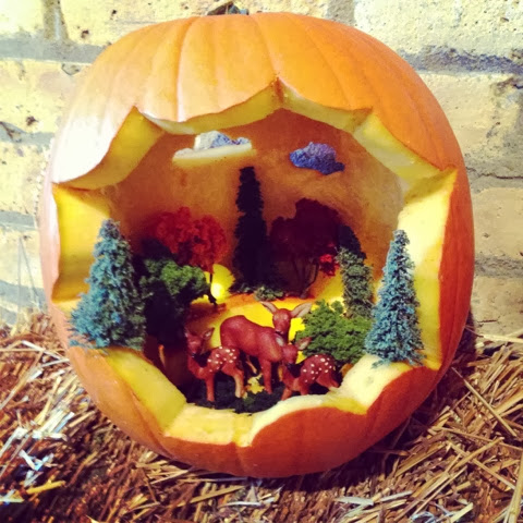 blogger-image-932489778 Published October 26, 2016 at 480 × 480 in The Spooky World of Halloween Pumpkin Dioramas (Second Edition) ← Previous Next → However, they couldn’t include a scene of deer mating, fighting, getting shot but hunters, or being hit by cars as would you normally see during the fall. So they decided to go with a deer family scene instead.