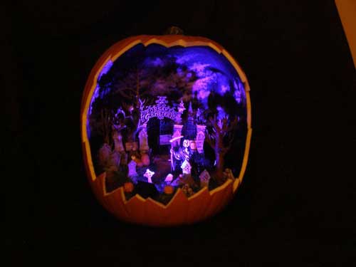 misc-6 Published October 26, 2016 at 500 × 375 in The Spooky World of Halloween Pumpkin Dioramas (Second Edition) ← Previous Next → Yes, I know you see a lot of graveyard pumpkin dioramas. But it’s Halloween for God’s sake. So graveyard scenes are a thing.