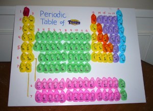 A periodic table of peeps. Never saw that before. Guess someone must be very into science.