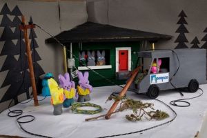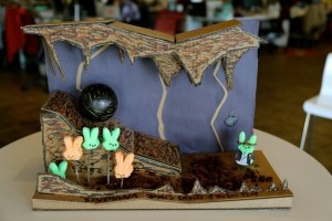 And these bunnies live in a literal cardboard prison. Too bad they couldn’t do a peeps chain gang.