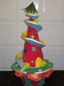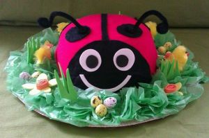 Funny how the brim consists of pom pom chicks and eggs. Though I’m not sure how the turtle got up the ladder.