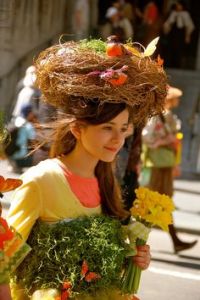 Of course, I can’t do my Easter post without including bonnets. Though I like to wear hats outdoors, I don’t usually wear an Easter bonnet because I live out in the country. And if I show up in one of the ones I’ve shown so far at church, well, I wouldn’t hear the end of it. Nor do I know of any local Easter parade in my area. Nevertheless, many do as I’ve seen on Pinterest and in photos of Easter parades across the country, particularly New York. Some of these bonnets might be of straw and have flowers on them. Some of them can be more outlandish which is what you’ve seen in my other posts. And let’s just say you won’t believe the hats I have found on the Internet. Of course, women initially wore them but since it’s such a fun tradition to make one’s own, men and boys have their own, too. Anyway, for your reading pleasure, I give you another installment of weird and wacky Easter bonnets to enjoy.