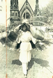 After all, she’s wearing a birdcage Easter bonnet. And I see she has to hold it up with her arm to keep it from falling.