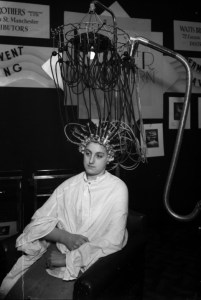 28. Is this woman getting a perm at the salon or having her brain infiltrated by aliens?