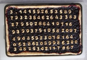 98. On this blueberry pie, pi runs in so many places.
