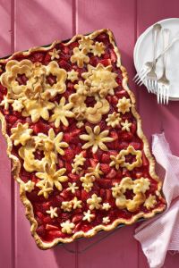 24. This strawberry rhubarb pie can use some flowers and leaves.