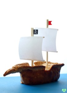 Hmm.. a pirate ship and a sea monster pie. Very interesting. Not something I’d think of serving at a family reunion.