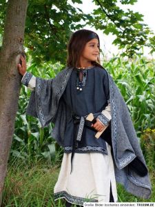 The costume mainly consists of torn clothing and a fur cape. But the velcro shoes give an anachronistic impression.