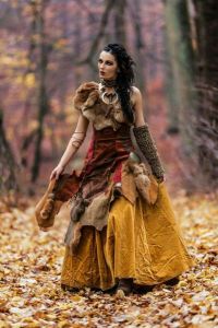 This one looks more like a Viking outfit. Not as fancy as a gown but practical. Hope she knows how to handle a sword.