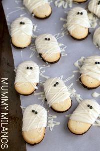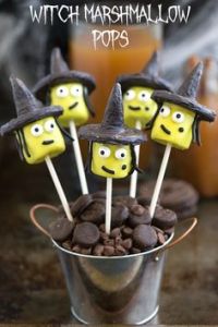 They basically consist of Rice Krispie treats dipped in icing and sprinkles with eyes on them. Though they’re more cute than scary.