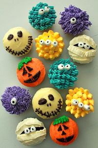 Consists of monsters, mummies, pumpkins, and skulls. But they’re more cute than scary.