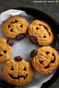 And yes, they have jack-o-lantern faces carved in. Though the filling doesn’t exactly look like pumpkin. More like apple.