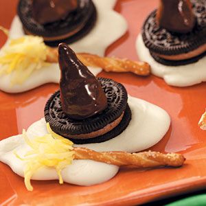 Consists of Oreos with pretzel sticks. Guess the top is made from a Hershey’s kiss.