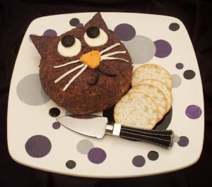 This one has olive eyes and almond slice teeth. Dip goes great with crackers.