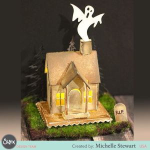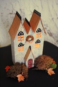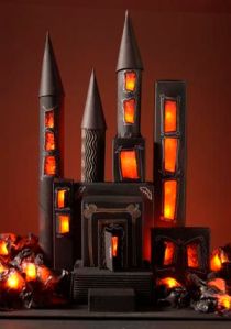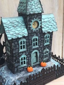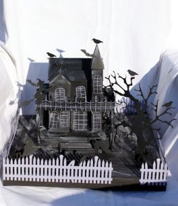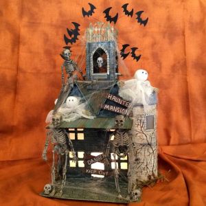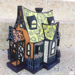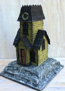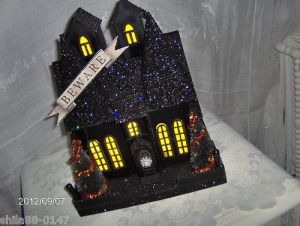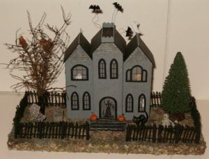 This is made of paper with all kinds of scary figures outside or in the windows. Perfect for a village display.