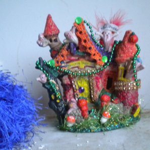 This one has a bright green house with orange and purple walls. And yes, it makes a great conversation piece.